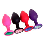 Plug anal grande de silicón liso con base de piedra de fantasía en colores